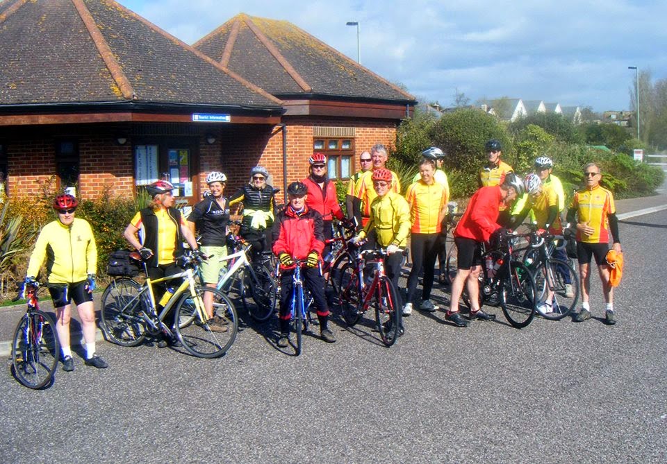 After checking in at the beach, I headed back to Seaton to meet up with 17 other riders at the TIC for the April ride.
